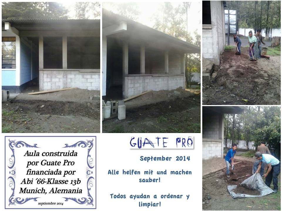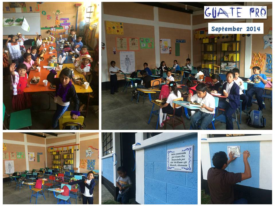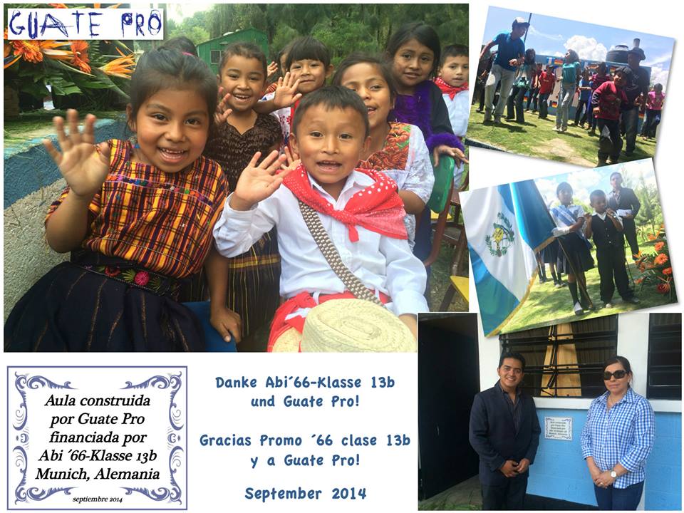 Ende September 2014 wurde noch ein Klassenzimmer in der Schule Escuela Los Aposentos eingeweiht! Dank einer großzügige Spende der ehemaligen Abiturschüler Abi`66 Klasse 13 b der Eramus Grasser Gymnasium in München konnte Guate Pro das neue Klassenzimmer finanzieren. Diese Aktion hat unser Mitglied Rudi Hillenmeyer ins Leben gerufen.
